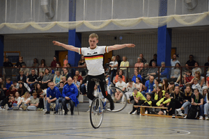 Als letzter Starter ging Linus Weber von Position eins aus auf die Bahn. Zuvor hatte Simon Halter, sein Dauerkonkurrent vom RSV Erlenbach, ein gutes Ergebnis von 184,00 Punkten vorgelegt. Gleich zu Beginn misslang der Maute Sprung, Linus musste vom Rad und wertvolle Punkte liegen lassen. Die restliche Kür lief dann wieder, und Linus konnte einige Punkte durch zusätzliche Lenkerdrehungen gutmachen. Mit 192,21 Punkten – nur 0,01 Punkte unter seinem eigenen Weltrekord, den er zwei Wochen vorher in Schwanewede aufgestellt hatte - stieg er als Vorrundensieger vom Rad.