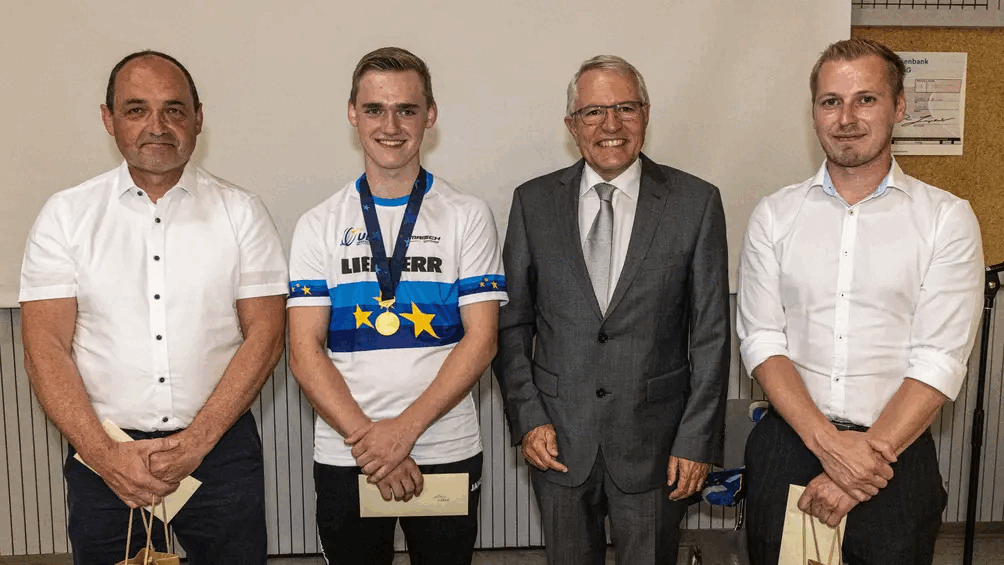 Als Vertreter des Sportkreises Biberach überbrachte Matthias Brugger Glückwünsche und lud Weber zur Teilnahme an der nächsten Sportlerehrung des Landkreises ein. Er äußerte die Hoffnung, dass der Europameister nach seinem letzten Jahr bei den Junioren seine Kunstradkarriere bei den Männern fortsetze.