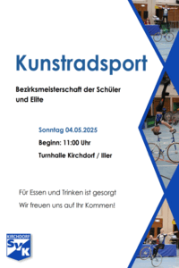 Am 4. Mai sind alle Interessierten herzlich in die Sporthalle nach Kirchdorf eingeladen. Der Wettkampf beginnt um 11 Uhr. Zu sehen sein werden gleich zu Beginn um 11:12 Uhr Alessa Wagner bei den U11 Schülerinnen, gefolgt von Clara Kirchenmaier um 11:30 Uhr und Felicitas Weber (11:45 Uhr). Als drittletzte Starterin in dieser Disziplin fährt um 12:00 Uhr Laura Pracht. Nach der Mittagspause hat Alisa Karsten ihren Auftritt. Sie fährt bei den Schülerinnen U13 von Position 1 um 13:51 Uhr.