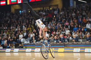 Am Samstagabend zeigten dann ab 20.30 Uhr die vier weltbesten Sportler im Kunstradfahren, was in ihnen steckt: Csaba Varga aus Ungarn, Yat Nam Chan aus Hongkong, Linus Weber und Philipp Rapp rockten mit ihren Darbietungen die ausverkaufte Göppinger Arena, wobei der sympathische Ungar Csaba mit 168,78 Punkten Bestleistung ablieferte, den Hongkonger Yat Nam noch überholte und freudestrahlend die Bronzemedaille abräumte.