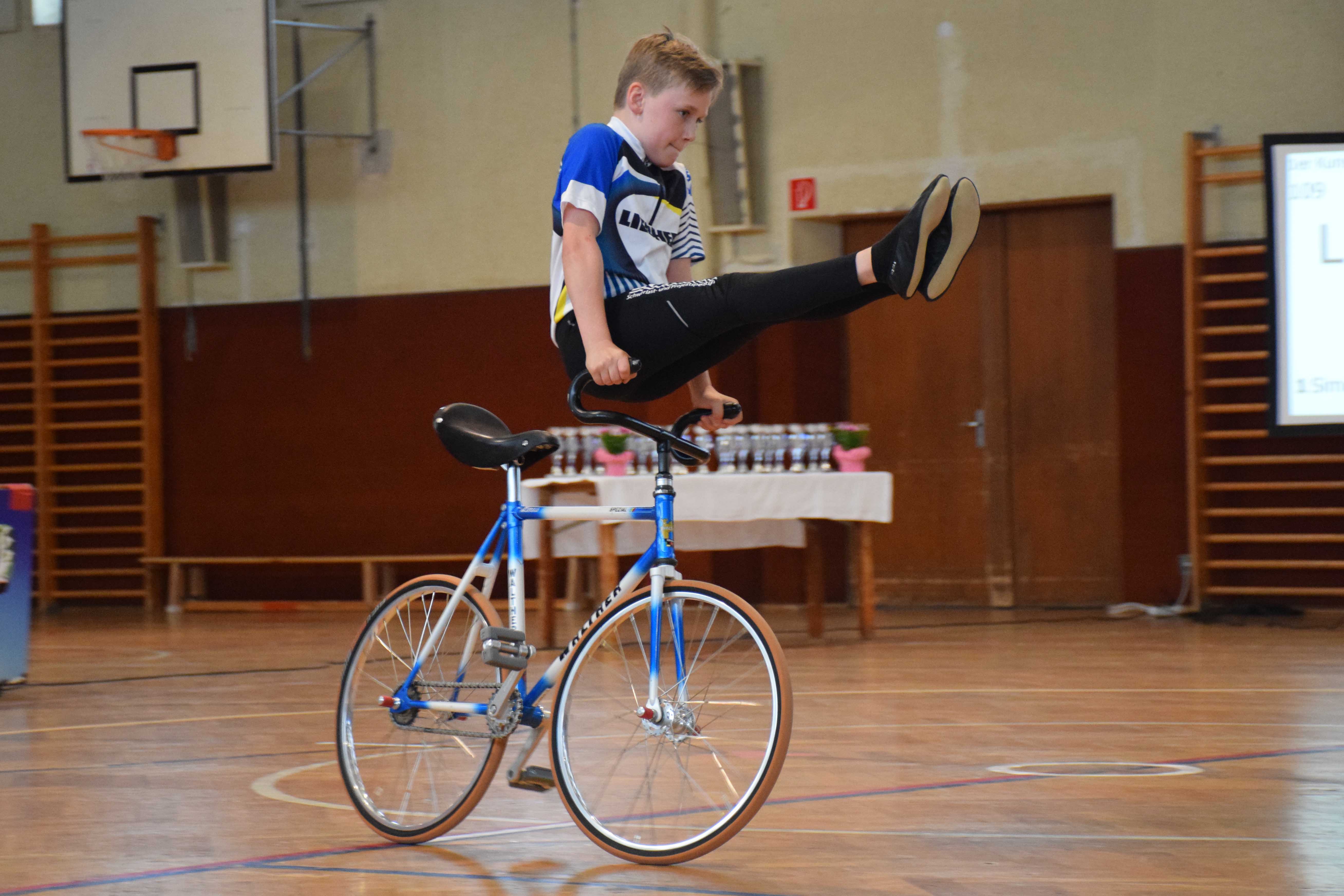 Am vergangenen Sonntag fand das Finale des Baden-Württemberg-Cups im Kunstradfahren in Friedrichshafen statt. Von insgesamt vier Wettkämpfen zählen am Ende die besten drei Ergebnisse für die Gesamtwertung. Spannend war es nochmals in der Altersklasse der Schüler U13 geworden. Hier ging Linus Weber vom SV Kirchdorf an den Start. Linus führte bislang nach drei Wettkämpfen die BW-Cup-Serie an. Dicht gefolgt von seinem Konkurrenten, der am letzten Wettkampftag mit 84,33 Punkten eine sehr hohe Punktzahl vorlegte. Linus ließ sich von diesem Ergebnis jedoch nicht aus der Ruhe bringen und ging hoch konzentriert auf die Fläche. Die gute Konzentration machte sich bezahlt: Linus zeigte eine sehr schöne Kür. Auch die Stützübungen, die ihm an den vergangenen Wettkämpfen teilweise Probleme bereitet hatten, funktionierten einwandfrei. Dies machte sich dann auch an der Punktzahl bemerkbar. Mit 85,74 Punkten konnte er den letzten Durchgang als Erstplatzierter für sich entscheiden. Gleichzeitig holte er sich damit den Gesamtsieg des Baden-Württemberg-Cups mit insgesamt 247,82 Punkten.
