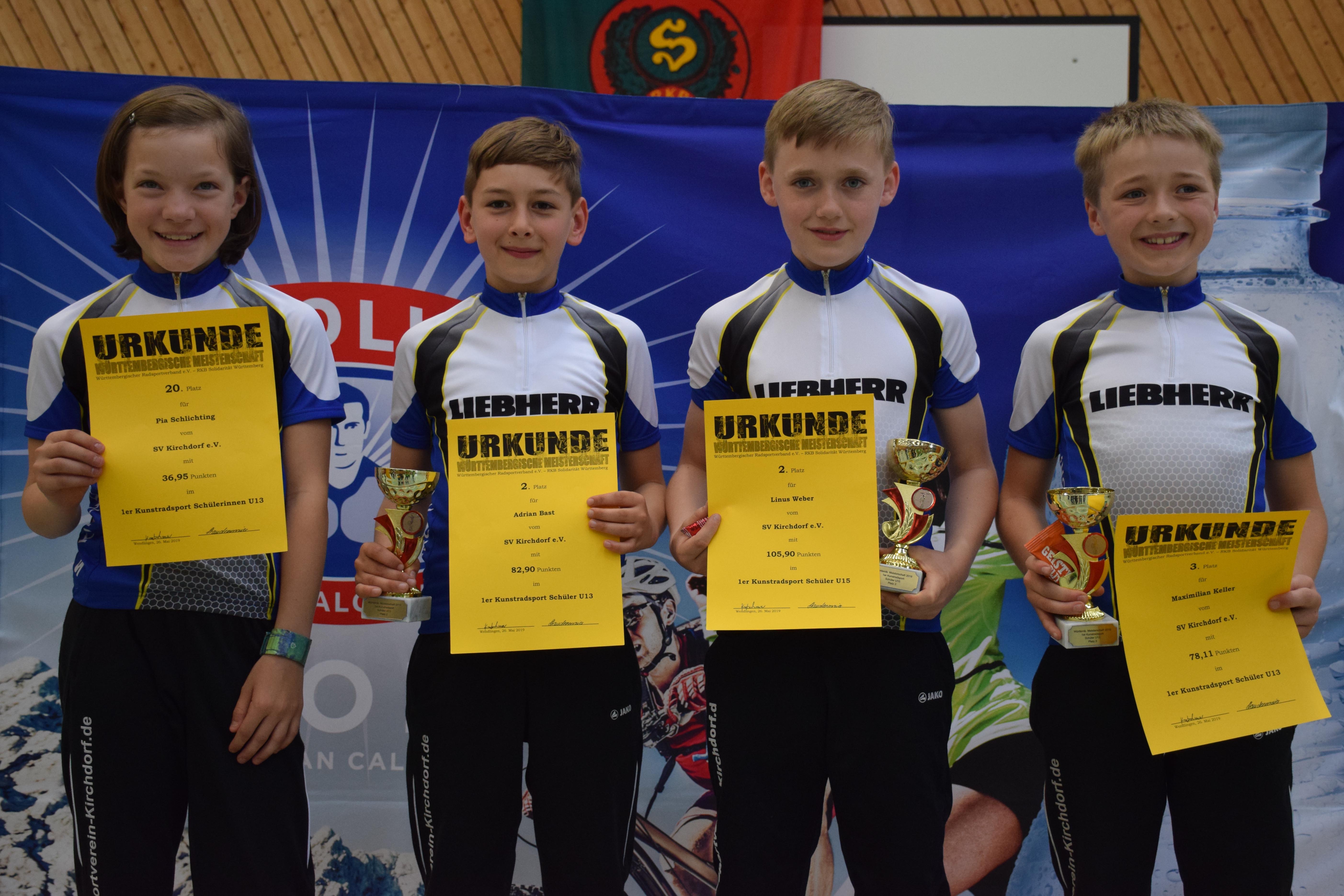 Bei den Württembergischen Meisterschaften im Kunstradfahren am vergangenen Wochenende in Wendlingen traten vier Sportler vom SV Kirchdorf an. Pia Schlichting hatte sich völlig überraschend in letzter Minute noch qualifiziert.