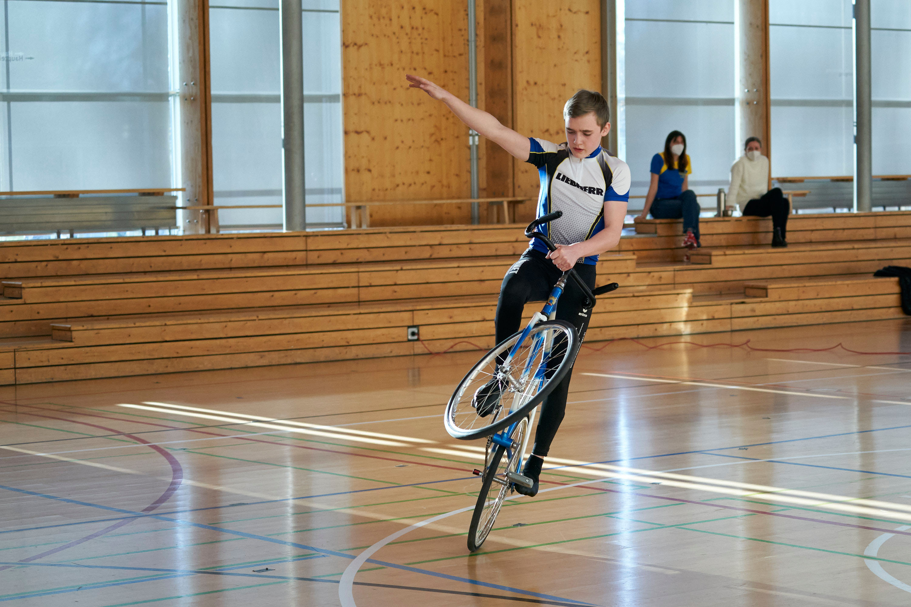 Nach einer gefühlten Ewigkeit sind bei den Kunstradlern nun endlich auch die Wettkämpfe wieder gestartet – allerdings nur für Kadersportler aus den Landes- und Bundeskadern und unter hohen Hygieneauflagen. Nur diese Sportler durften in den letzten Monaten auch trainieren, zum Teil unter schwierigen Bedingungen wie ungeheizten Hallen und nur mit Trainern aus dem familiären Umfeld. Linus Weber hat für sich und mit Trainer und Onkel Stefan Raaf daraus das Beste gemacht und ist bravourös als Mitglied des Landeskaders in sein erstes Juniorenjahr gestartet. Hier muss er sich nicht nur mit 2 anderen Landes- sondern auch mit gleich 3 Bundeskadermitgliedern messen und zudem auch noch 5 neue Übungen in der gleichen 5min Zeit unterbringen.