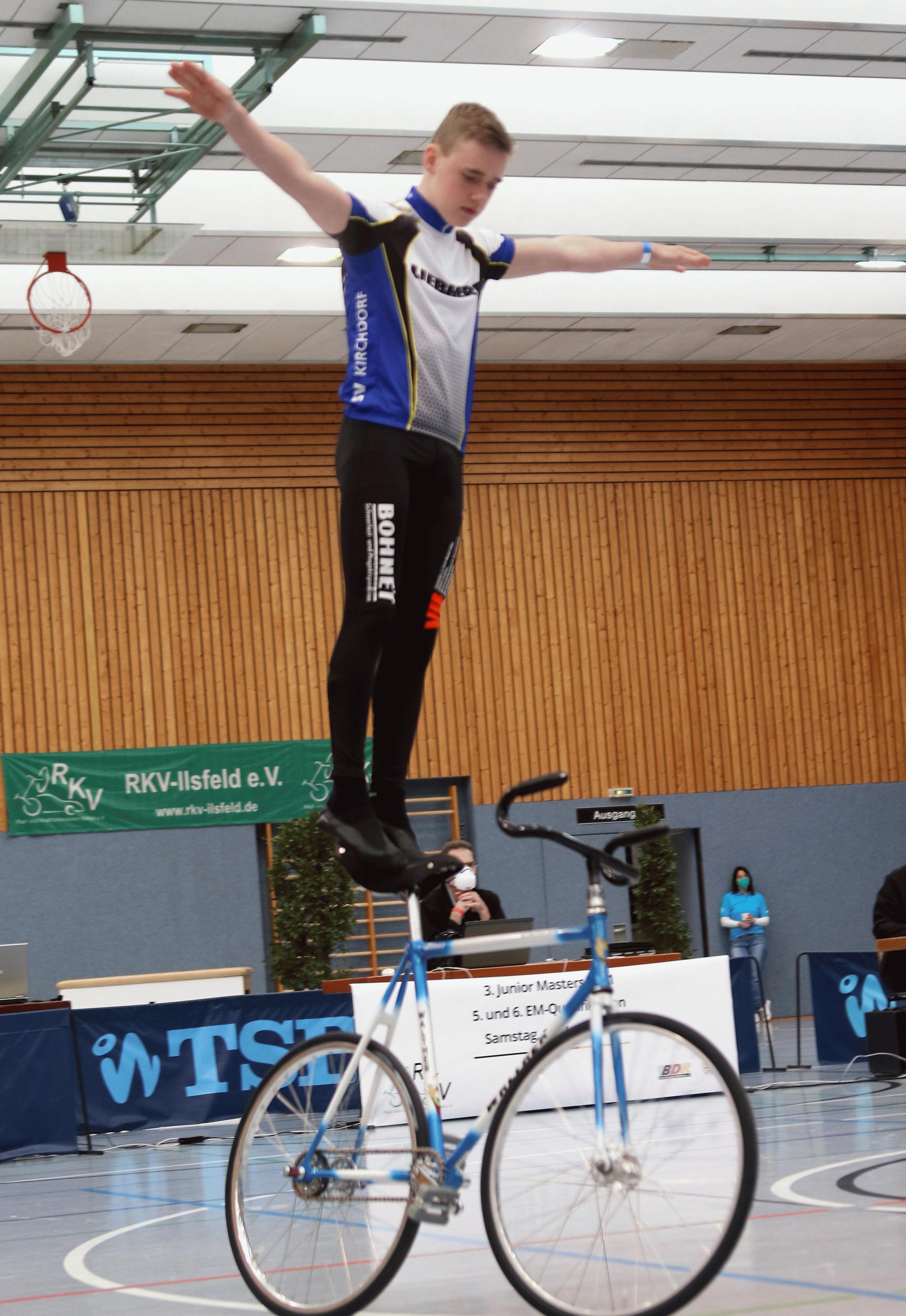 In Ilsfeld ging am 10. April 2021 die Junior-Master Serie 2021 im Kunstradfahren zu Ende. Gleichzeitig war dieser Wettkampf auch das Halbfinale für die Deutsche Meisterschaft. Die gesamte Veranstaltung fand unter verschärften Corona-Hygienebedingungen statt. Alle Sportler, Betreuer, Offiziellen und Helfer mussten einen negativen Coronatest vorweisen, und Zuschauer waren auch dieses Mal nicht erlaubt. Startberechtigt waren wieder nur Sportler mit Landes- bzw. Bundeskaderstatus.