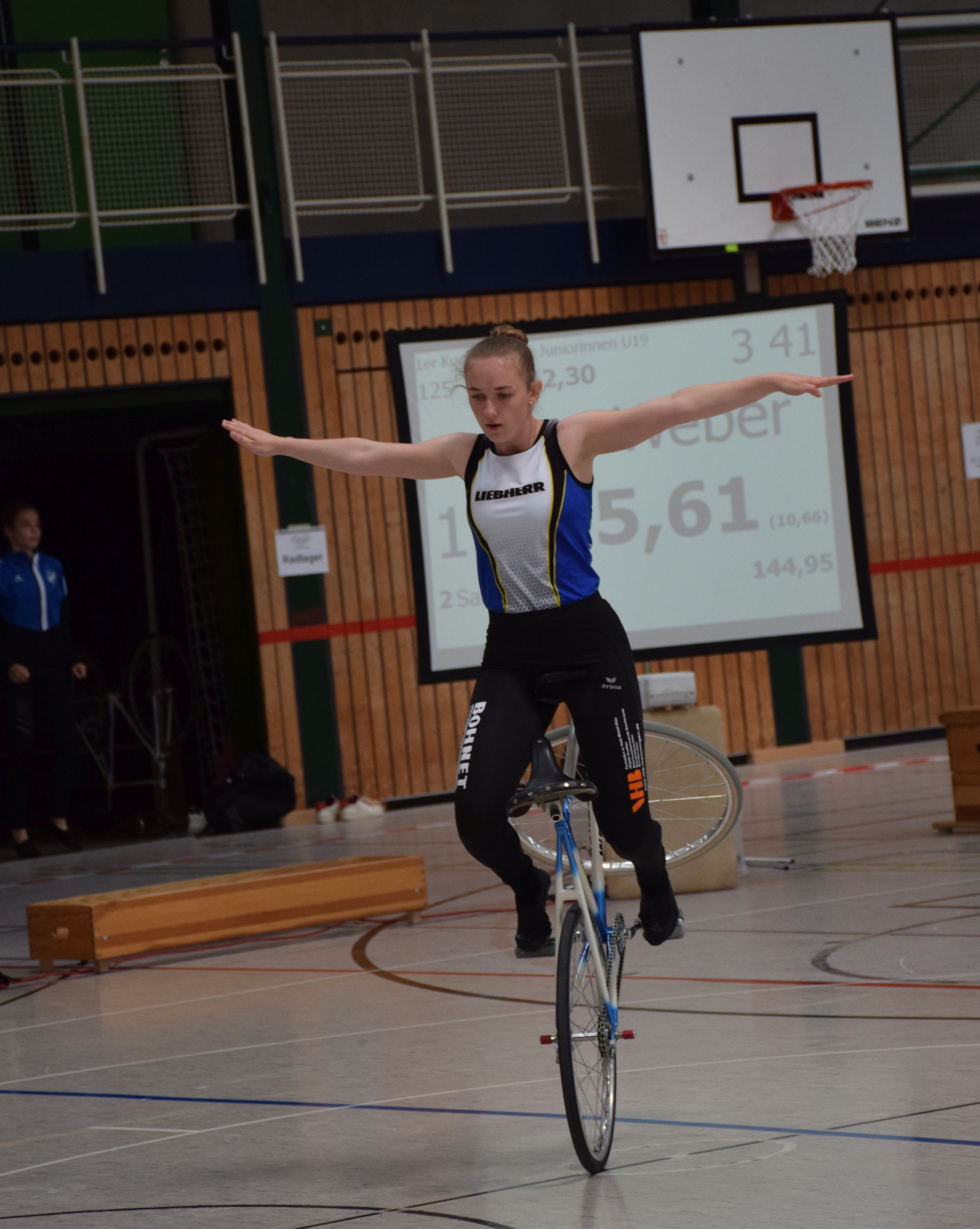 Gleich als erster Kirchdorfer Starter präsentierte Linus Weber bei den 1er Junioren sein Können. Er zeigte eine ruhige und fast fehlerfreie Darbietung. Lediglich musste Weber eine kurze Bodenberührung in Kauf nehmen,konnte jedoch bei der Lenkerstanddrehung Extrapunkte ergattern und fuhr so zu seiner neuen persönlichen Bestleistung. Mit gerade einmal 3,5 Punkten Abzug blieben 159,37 Punkte für Linus stehen und er errang Platz 3. In der Gesamtwertung der BW-Cup Serie belegt Linus Weber Rang 2.